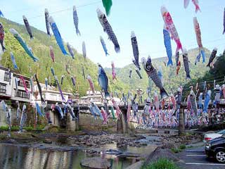 杖立温泉は恒例の鯉のぼりをあげてました! |