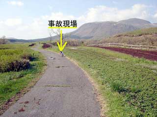 アスファルトの継ぎ目に前輪が挟まり前転して転倒してました。 |