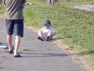 と!僕らの後ろからキックボードでついてきていた成輝が坂道で転倒!