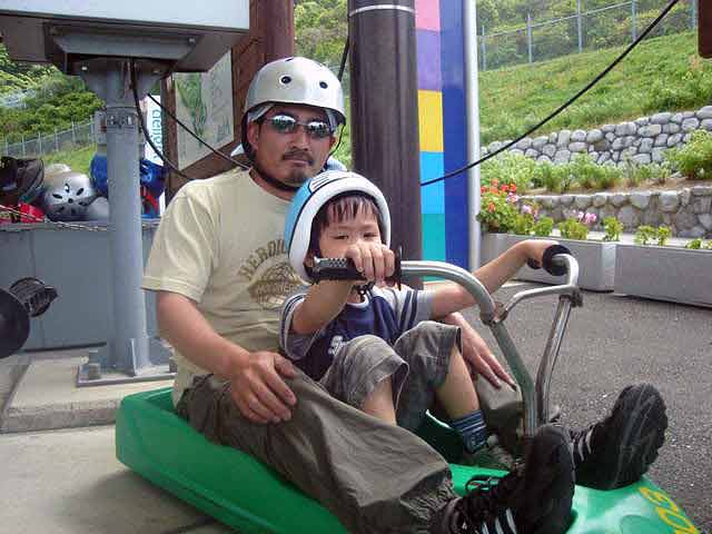 この日は子供の日と重なり人が多くてローラールージュに乗るまでに30分待ちでしたので私達は初級コースを1回だけ走りました。初級コースでもかなりのスピードがでるので楽しい乗り物でした! |