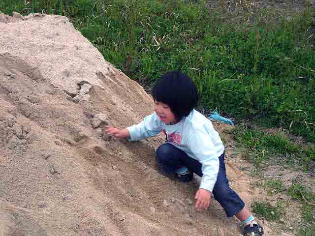 近くに砂山を発見した子供達は全身砂まみれになって遊んでました! |