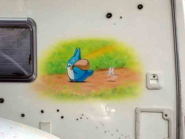 ジジさんのご両親のキャンピングカーにはトトロの絵がキャンピングカー側面に描いて有りました。