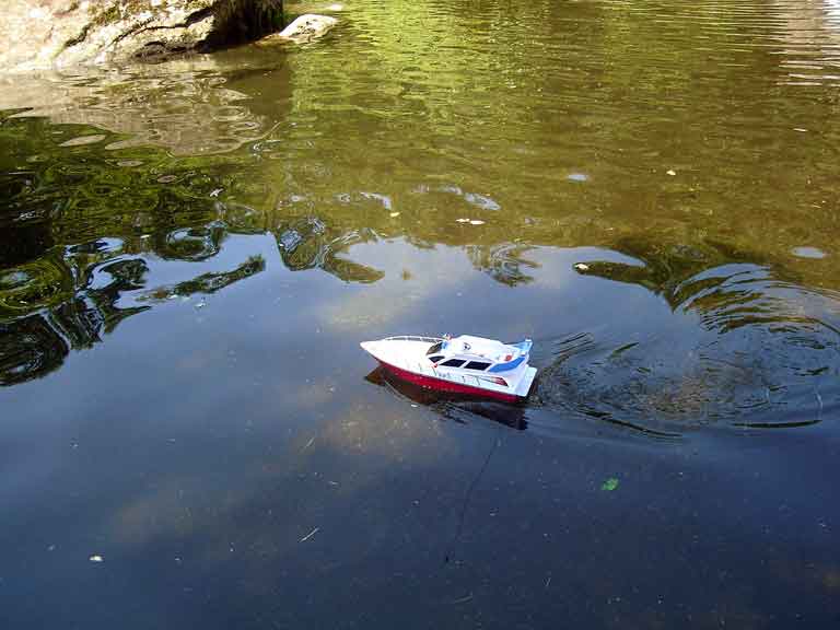 ボートのラジコンでエキサイトして結局水の中へ〜(笑) |