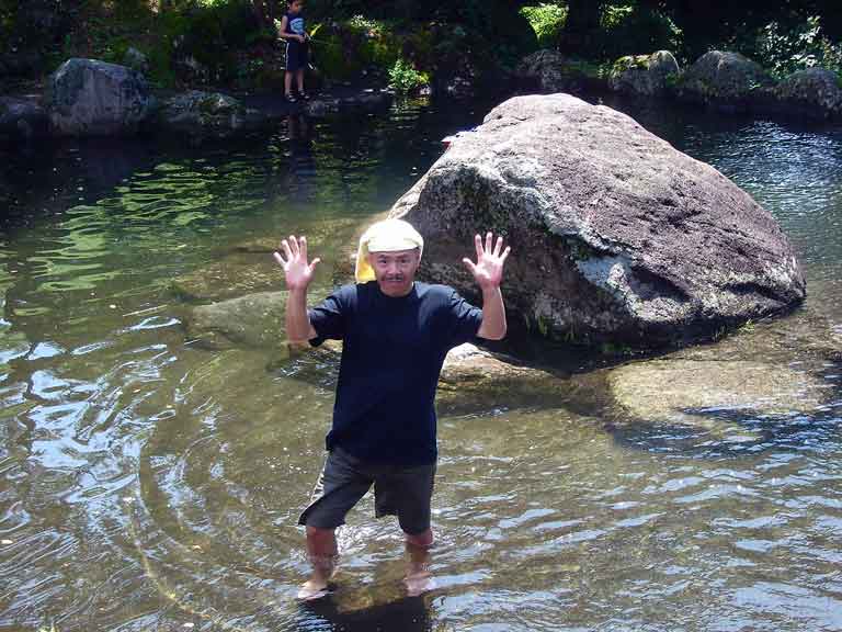 夕方は各自お風呂に行き、私達は黒川温泉の近くの万作の湯に入りました。 |