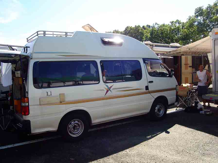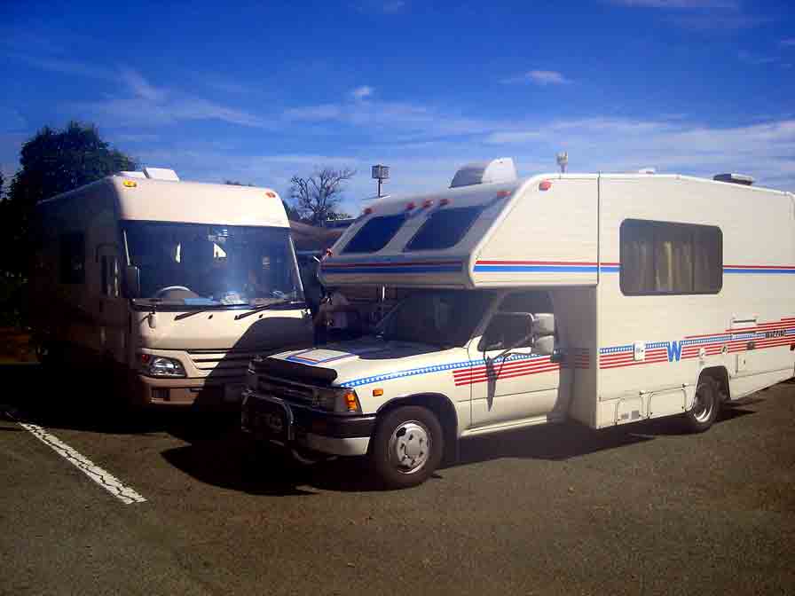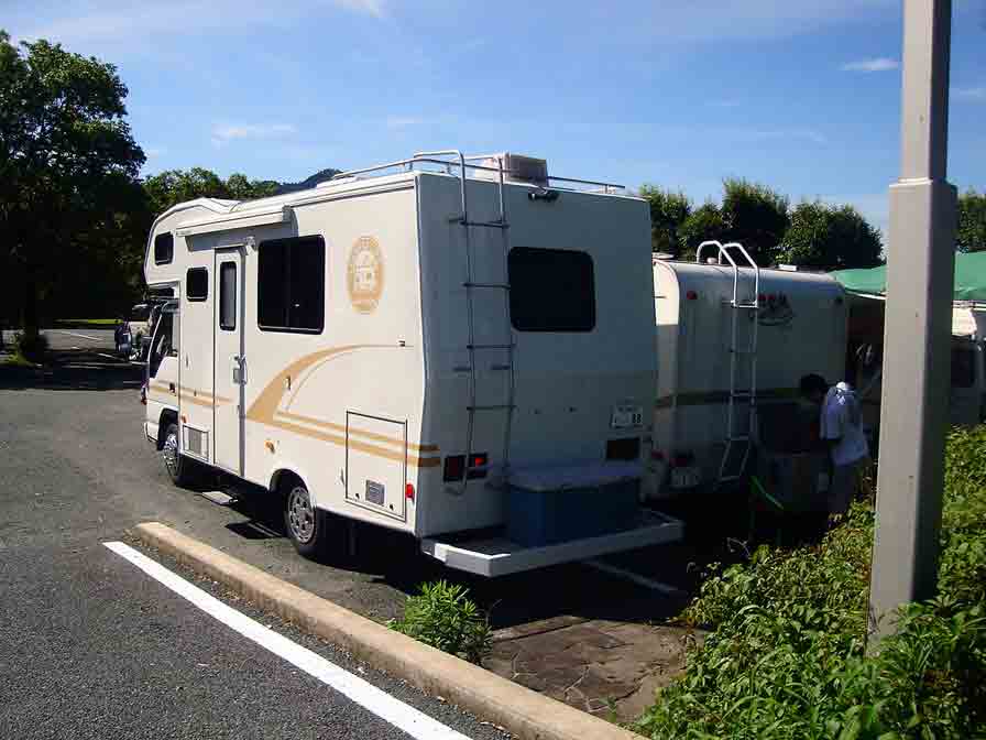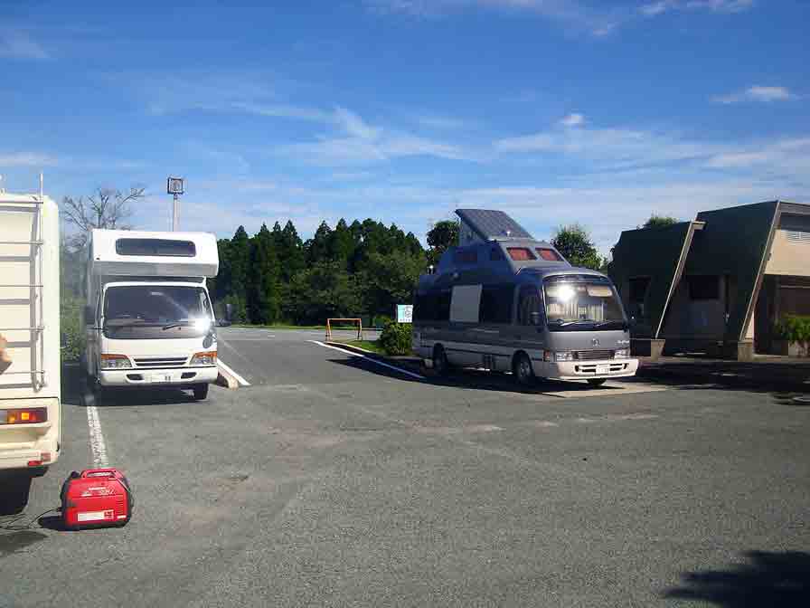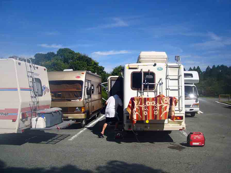 温泉を満喫して、キャンピングカーの前で記念撮影〜