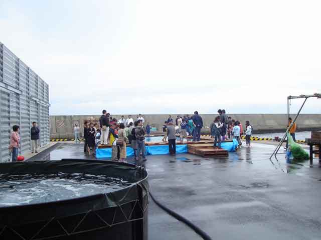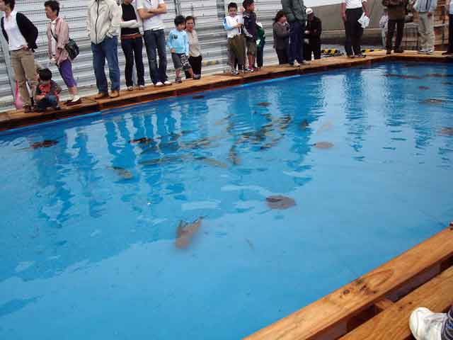 生月島の漁港ではお祭りが開催して有り、子供限定のタコの掴み取りが開催されてました!