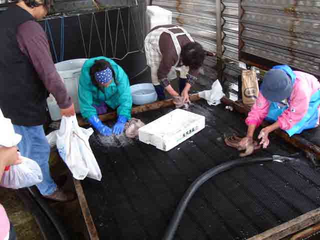 水槽の隣では、取ったタコを塩もみしてヌメリを抜いて、釜で茹でてくれるサービスまで有りました。