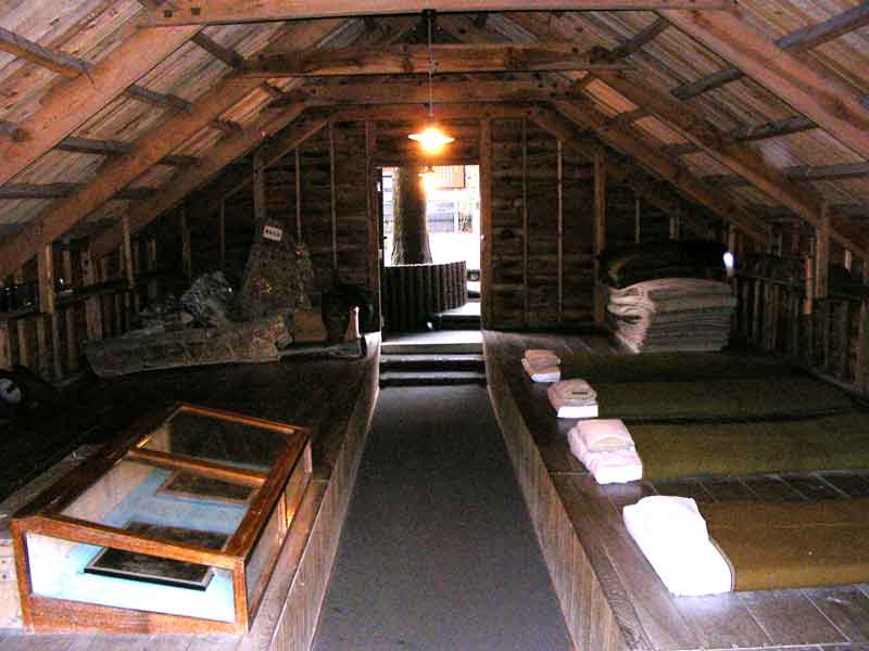 兵舎の中は意外と広く14〜15名が寝泊りできそうでした。 |