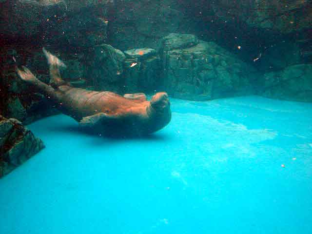 このアザラシはかなり高い所から飛び込みます。