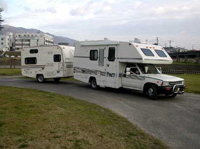 やはり、アメリカ産のキャンピングカーにはアメリカのトレーラーが似合います。(笑)