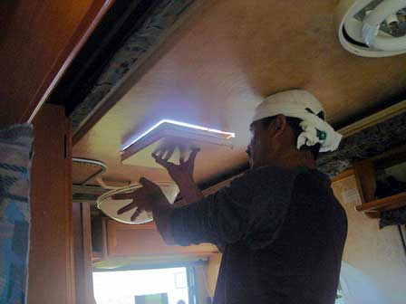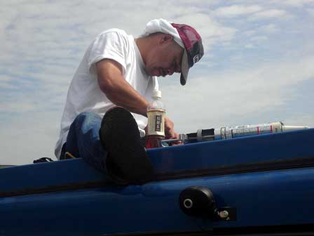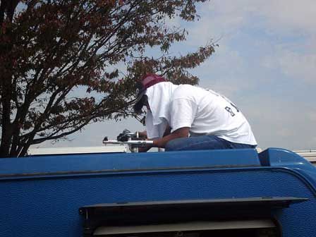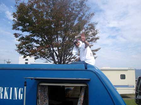 飛行機のラジコンを見せて頂いてから、ジジさんのトレーラーの防水(コーキング)の作業に取り掛かりました。