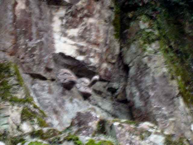 ふと、山に目を向けると絶壁に天狗の彫刻が!