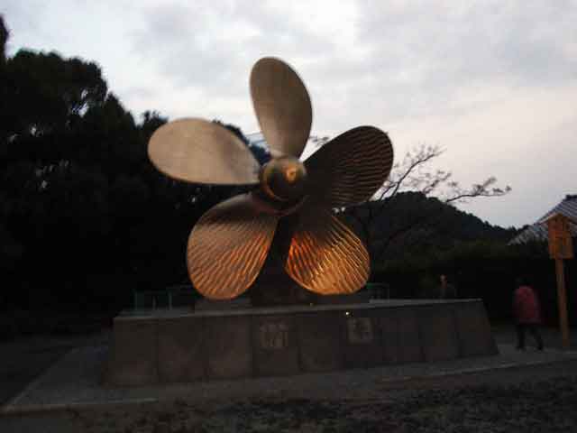 陽も傾きかけてきたので、ふらふらしながら、来た道を下って行くと巨大な船のスクリューを発見! |