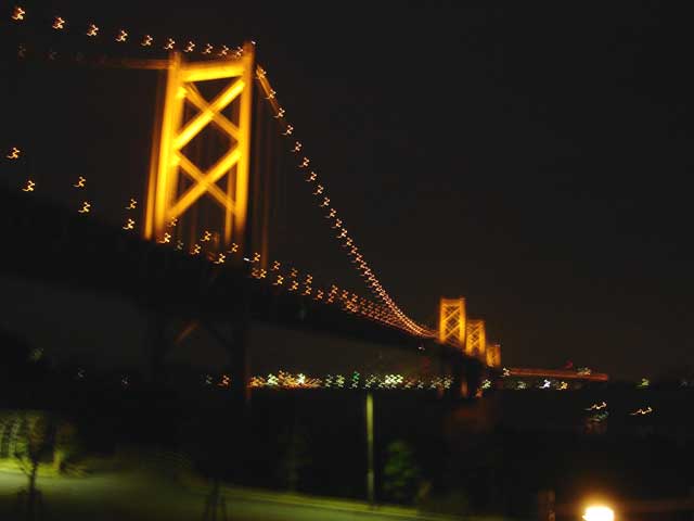 夜の瀬戸大橋ですので、せっかくの景色が見れないのが残念です。 |