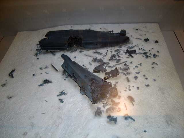 沈没して海底に沈んだ様子を模型で展示してありました。 |