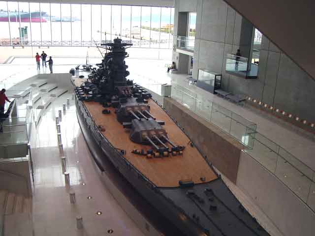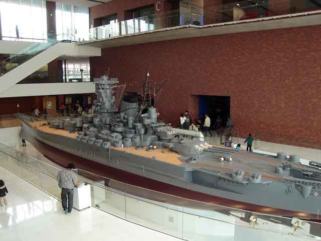 受付をすぎると巨大な戦艦大和の模型が展示してあります。 |